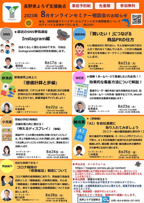 長野県よろず支援拠点の7名のコーディネーターによるセミナー相談会を開催します!