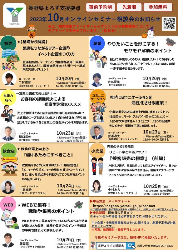 長野県よろず支援拠点の7名のコーディネーターによるオンラインセミナー相談会を開催します!