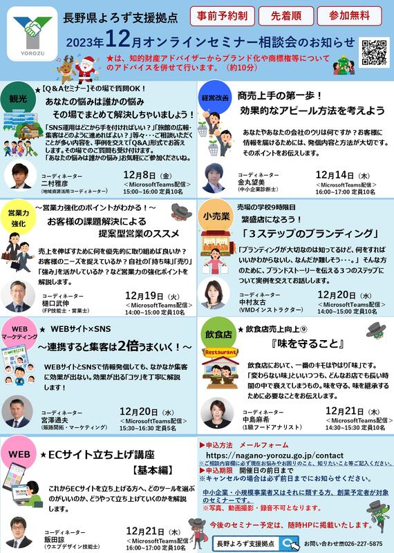 長野県よろず支援拠点の7名のコーディネーターによるオンラインセミナー相談会を開催します!