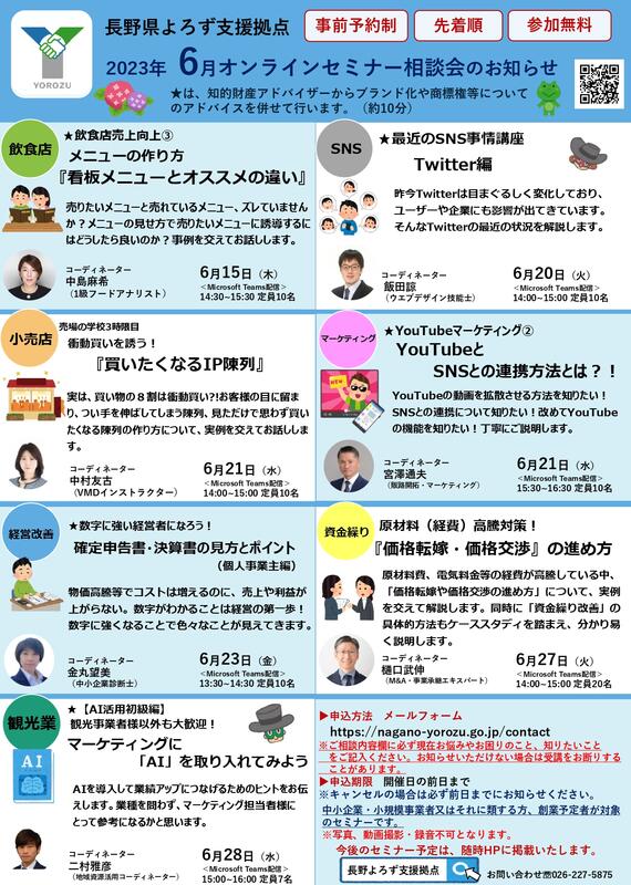 長野県よろず支援拠点の7名のコーディネーターによるセミナー相談会を開催します!