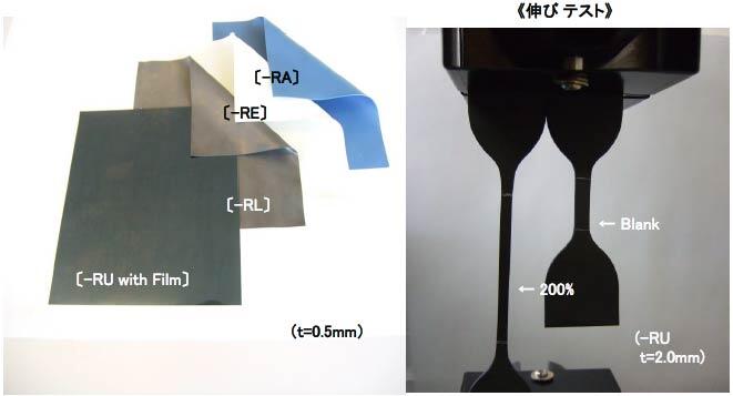 1.電磁波のうち、放射線のシールドを目的に開発された鉛代替材料 2.放射線に対し、シールド性のある金属(化合物)を特殊ゴムに均一分散させた柔軟性のあるシート状部材 3.シールド性能・ゴム物性別に4バージョンを用意 4.各種環境規制に対応済み.(RoHS/JGPSSI/REACH/Pb、Si、S フリー) 5.後加工が可能(各種フィルム、両面テープ等の付加) |