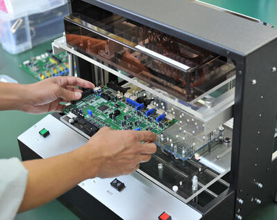 私たちの会社は検査装置、計測機器の開発業務を通じて大手電気メーカー様のものづくりに貢献しています。